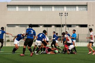 今年も高等学校、工業高等専門学校を中心に、2日間延べで、福岡県から8校、長崎県から1校、熊本県から1校、大分県から1校、山口県から1校の合計12校のラグビーフットボール部が参加し、200名を超える選手が集いました。当日は天候にも恵まれ晴天のもと、各校が25分のゲーム形式で対戦し、グラウンドでは、大きな声で活気に満ち溢れ、日頃の練習の成果を存分に発揮しようと懸命なプレーが随所に見られました。